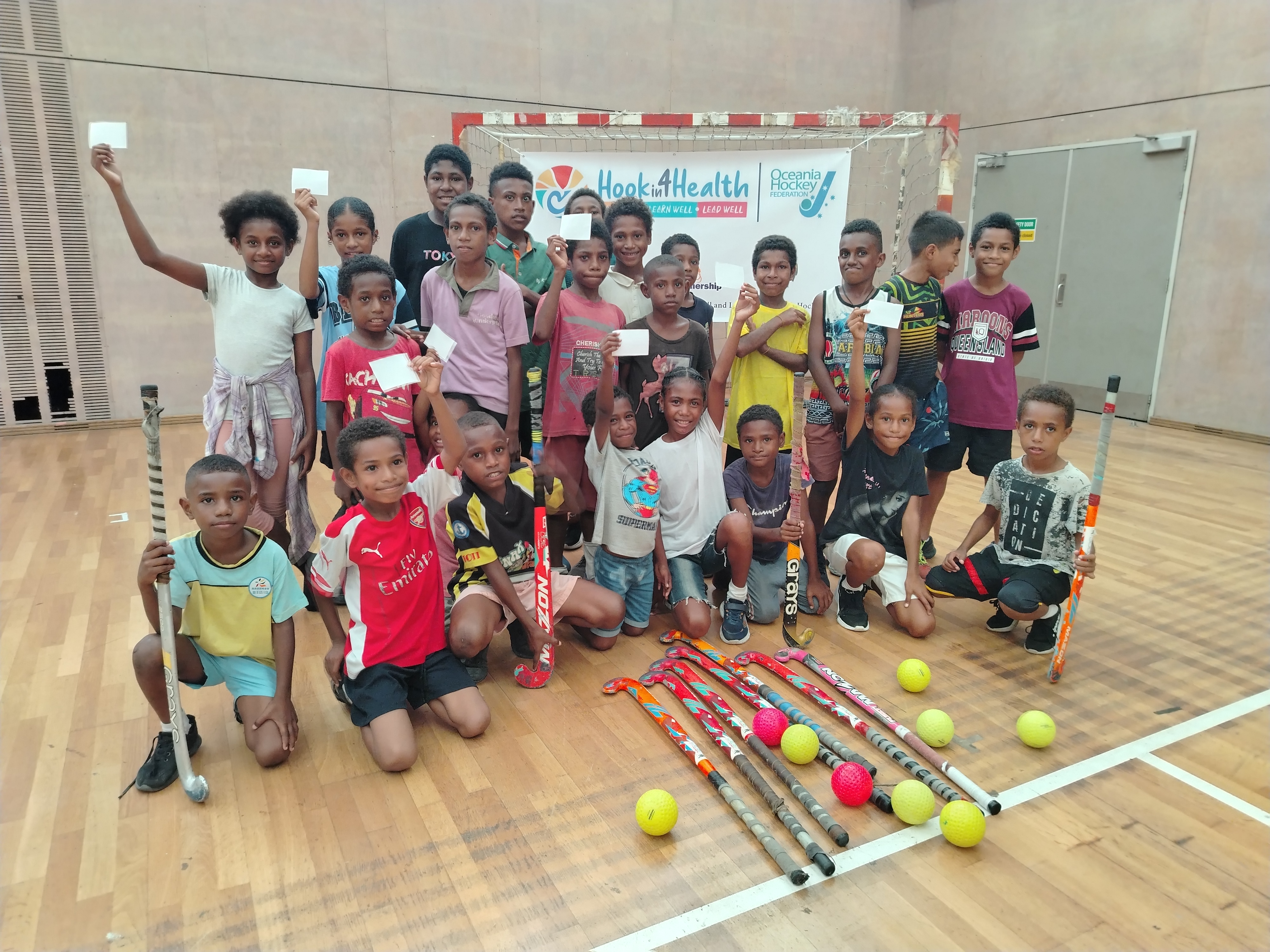 Hook in4 Health in Lae, Morobe Province. The outreach program and weekend sessions at Situm and the Lae Hockey field focused on basic hockey skills and using the Hin4H My Hockey Journal. The weekend sessions, with 32 participants, aimed to improve health awareness and help youth make informed choices.